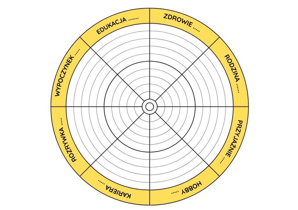 Pierwszym krokiem jest wybór obszarów, które zostaną uwzględnione w diagramie. Standardowo narzędzie składa się z ośmiu podstawowych sekcji, które reprezentują różne sfery życia. Warto jednak pamiętać, że istnieją też wersje z dziesięcioma obszarami, co pozwala jeszcze dokładniej dopasować koło do indywidualnych potrzeb użytkownika. Proponowane kategorie to:
